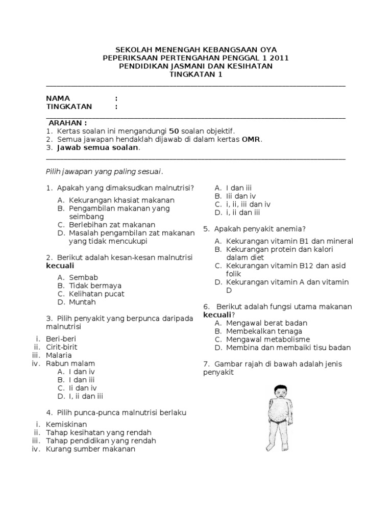 Ujian Sumatif Pendidikan Jasmani Kesihatan Tingkatan 1 Pdf