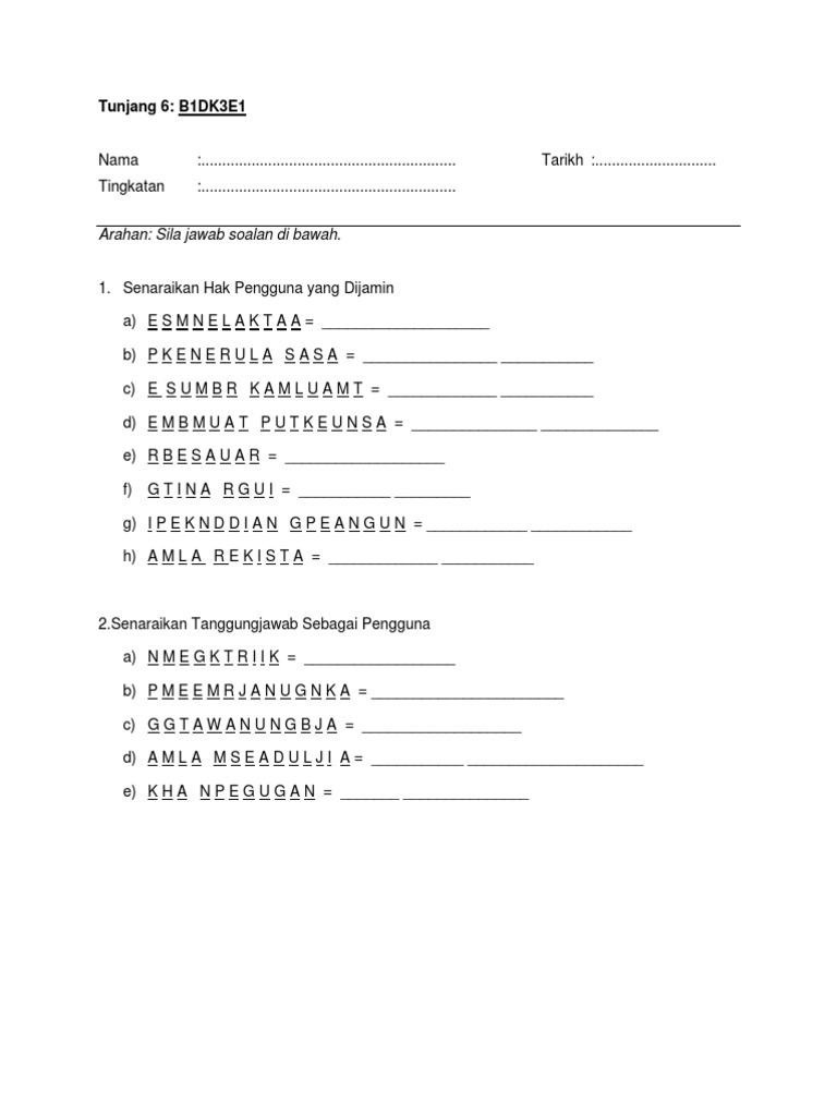 Pendidikan Kesihatan Worksheet For Tingkatan 1