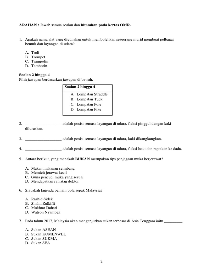 Soalan Pjk Tingkatan 2 Ujian 1 2018 Kssm Pdf
